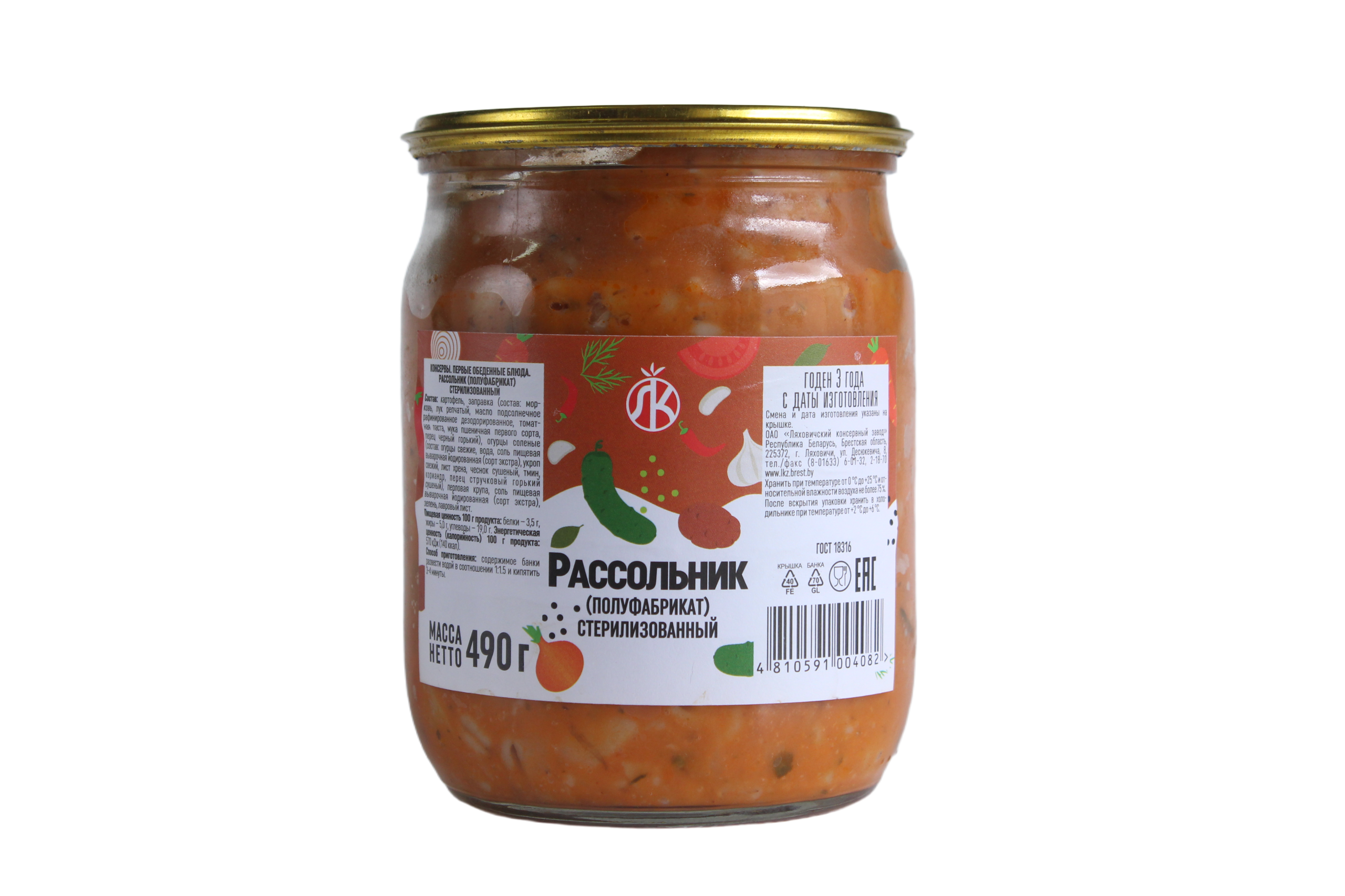 Рассольник (полуфабрикат) стерилизованный (490 г) — это готовая овощная основа для быстрого приготовления первого блюда. Основным производителем данной позиции в регионе является ОАО «Ляховичский консервный завод» (Беларусь).