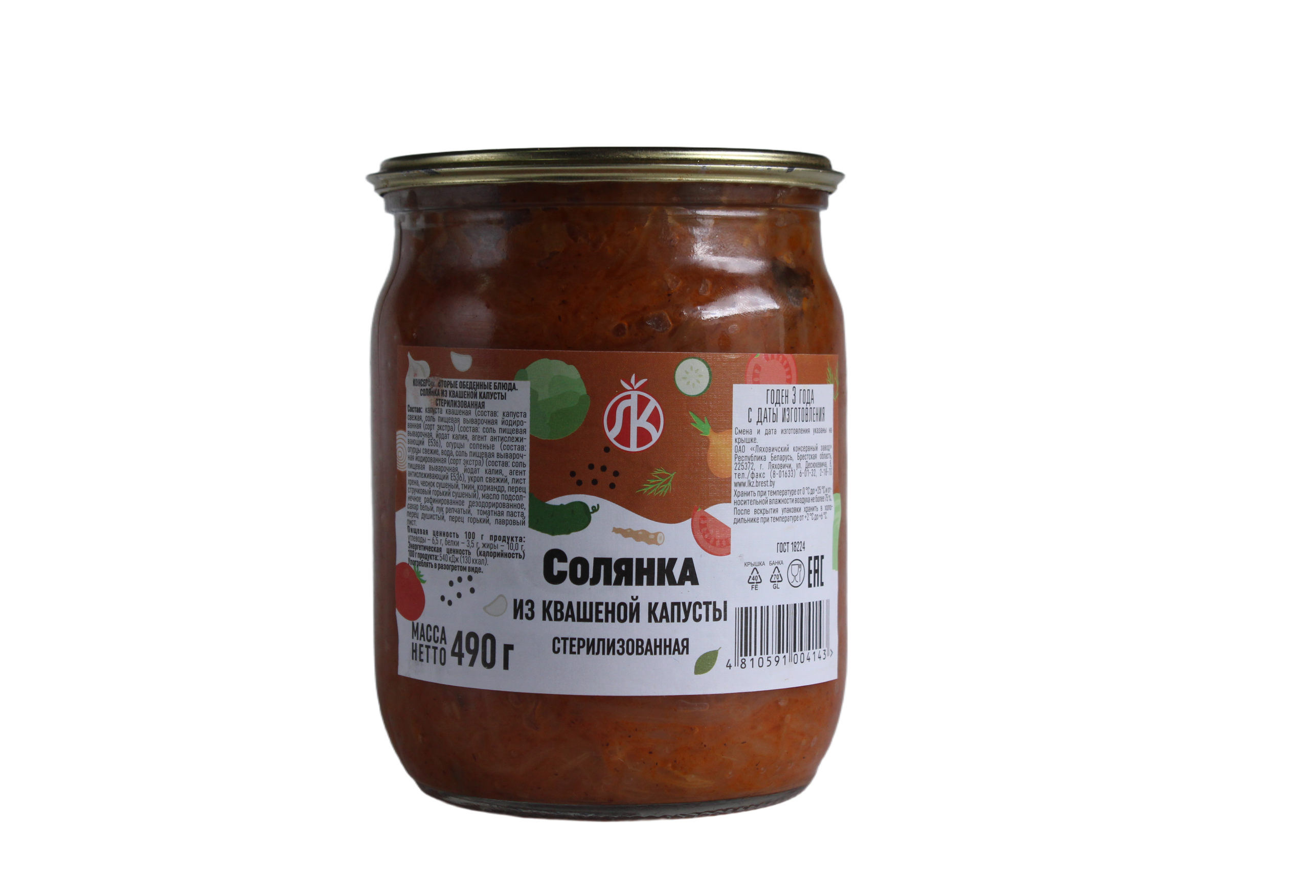 Солянка из квашеной капусты (490 г) — это традиционные овощные консервы от ОАО «Ляховичский консервный завод» (Беларусь). В отличие от варианта из свежей капусты, эта солянка обладает характерной кислинкой и более насыщенным ароматом.