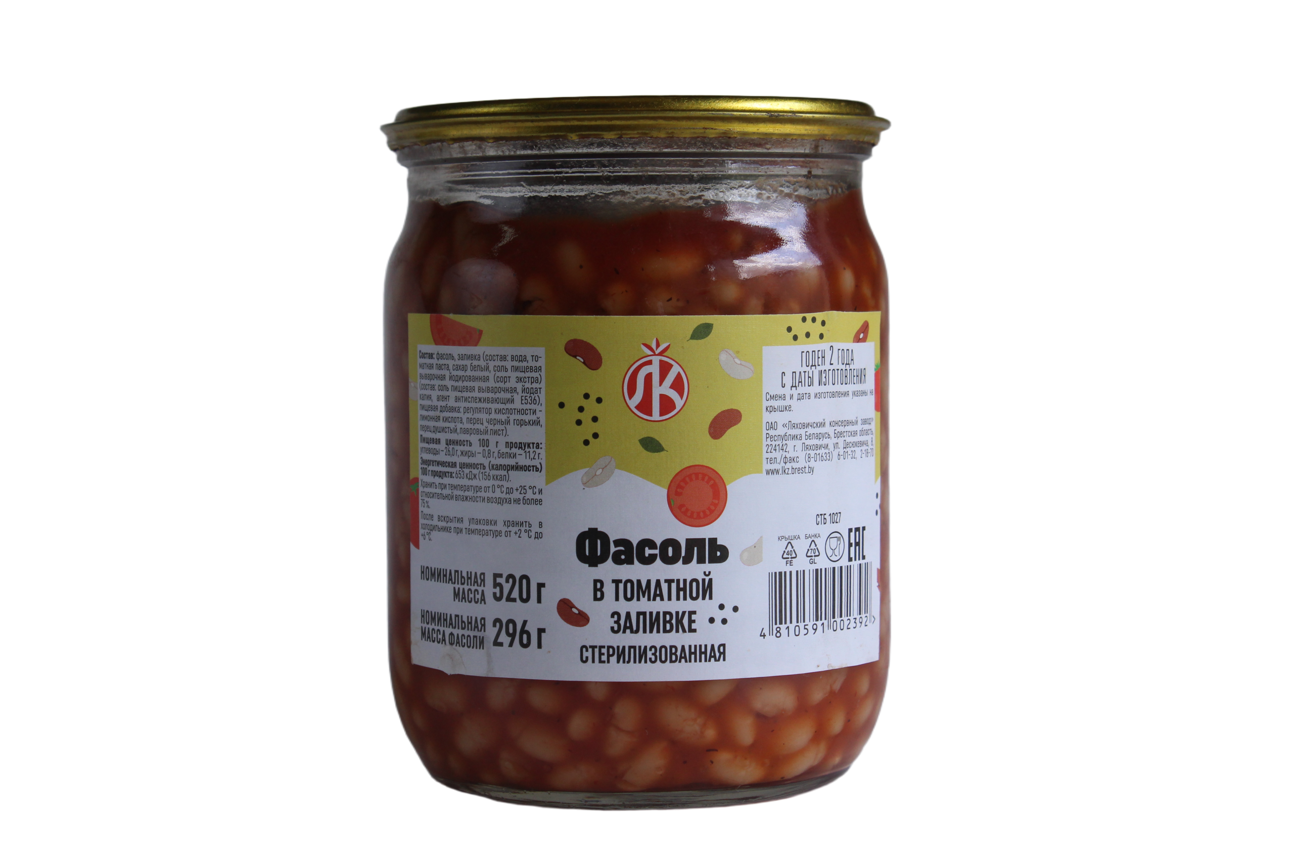 Фасоль в томатной заливке стерилизованная (520 г) — это натуральные овощные консервы, которые выпускает ОАО «Ляховичский консервный завод» (Беларусь). Продукт представляет собой цельные зерна фасоли в густом соусе, полностью готовые к употреблению.