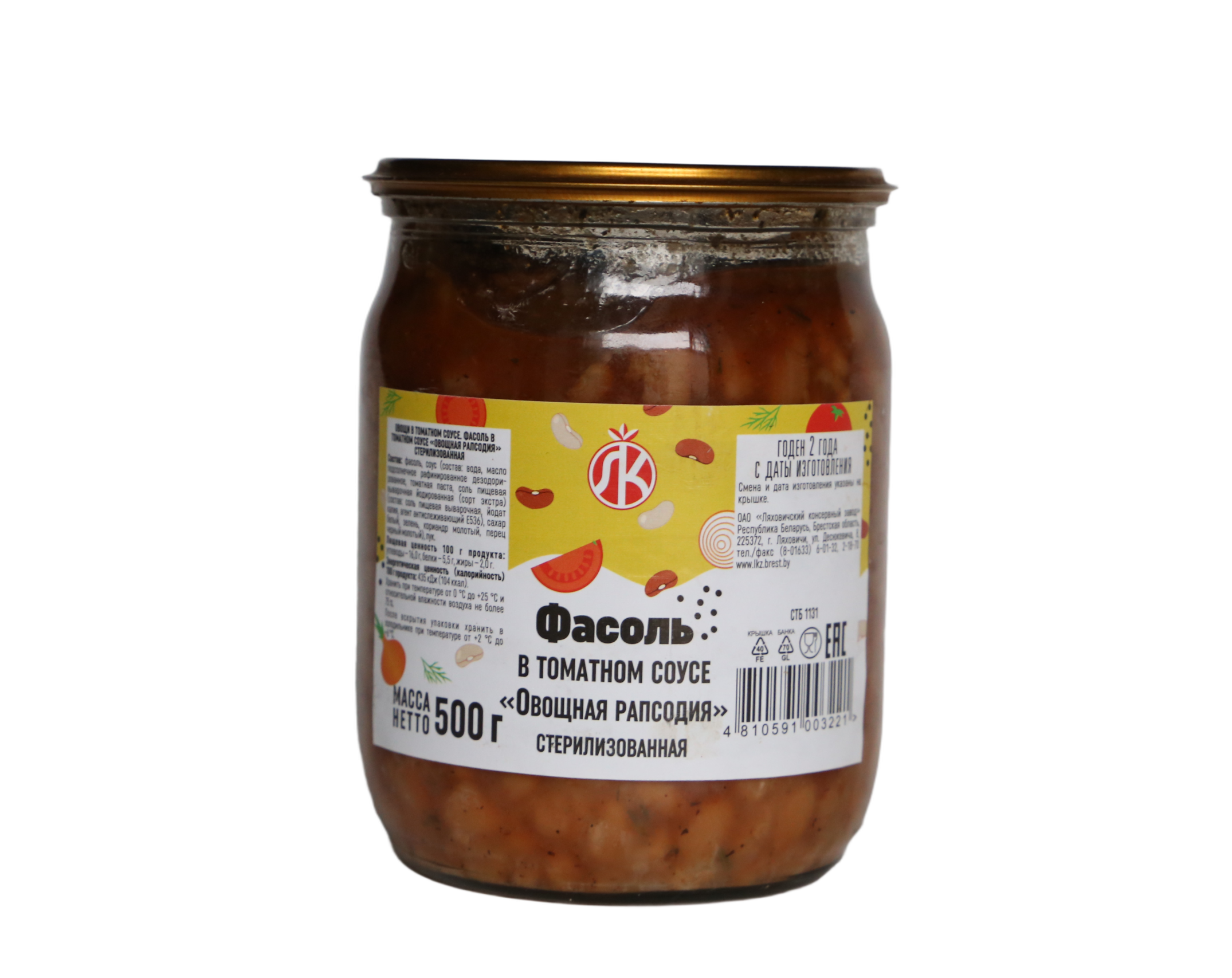 Фасоль в томатном соусе «Овощная рапсодия» (500 г) — это готовые стерилизованные консервы, которые производит ОАО «Ляховичский консервный завод» (Беларусь). Продукт относится к категории овощебобовых закусок.