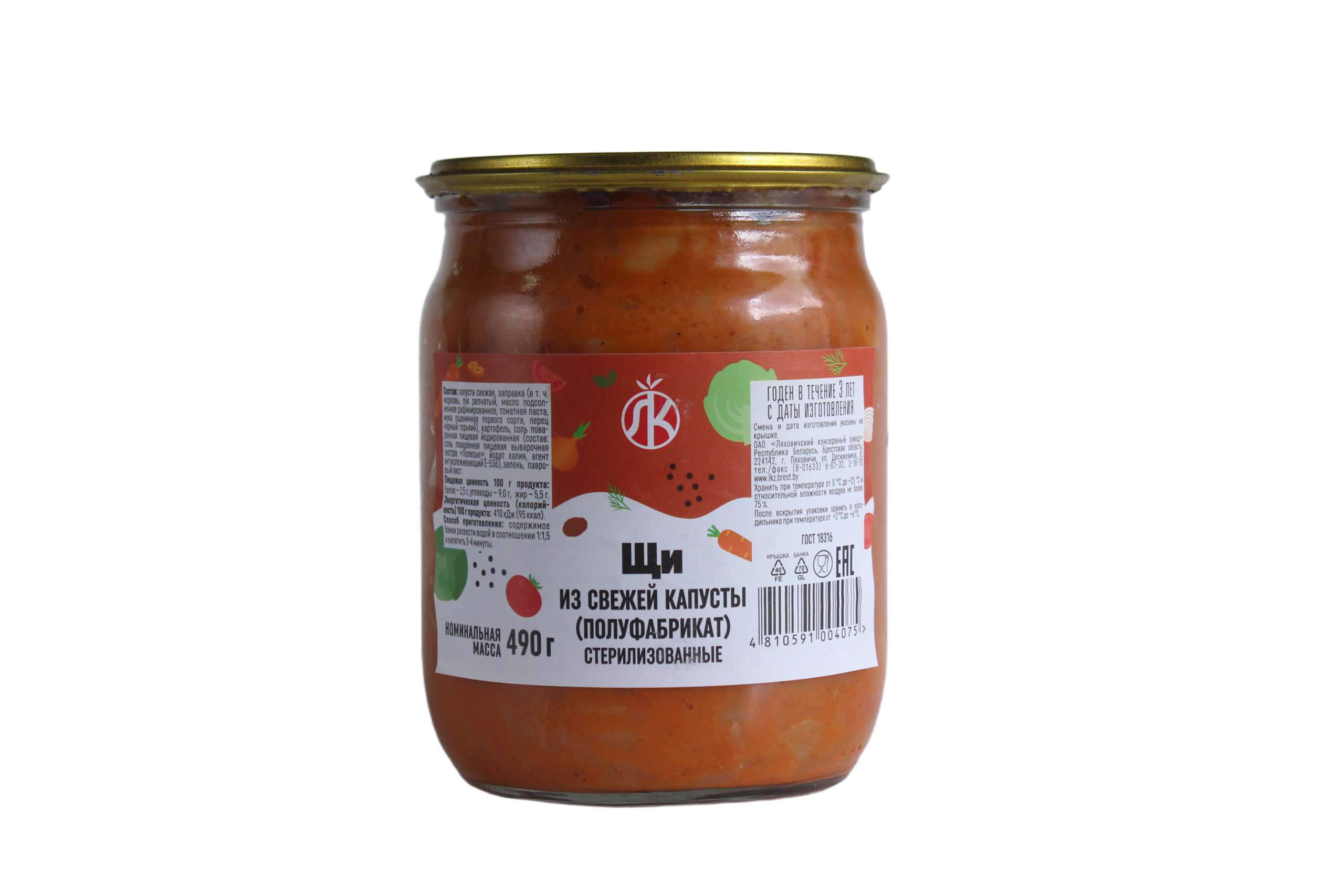 Щи из свежей капусты (полуфабрикат) стерилизованный (490 г) — это концентрированная овощная заправка от ОАО «Ляховичский консервный завод» (Беларусь), предназначенная для быстрого приготовления первого блюда.